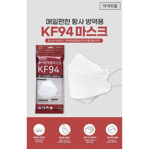 [100매 대형] KF94 매일 편한 황사방역용 마스크 대형 화이트 의약외품 (5매입) 마스크 상사