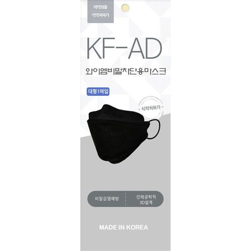 와이엠KFAD비말차단마스크 대형 블랙, 1개입, 20매
