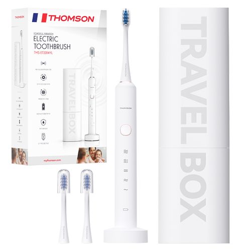 프랑스 톰슨 프리미엄 소프트 케어 IPX7 방수 초미세모 음파 전동칫솔 칫솔모 + 충전거치대 + 케이스, 1세트, 화이트, TMS-ET331WYL