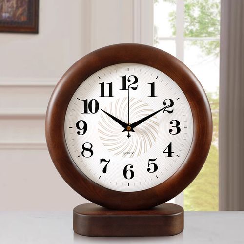 해피유통 클래식 원형 원목 탁상시계 거실 홈 데코 무소음 배터리 미포함 why, 사진색