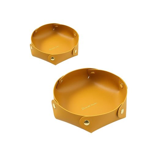 천스마켓 다용도 원형 가죽 인테리어 수납함, 2종 1세트, 옐로우