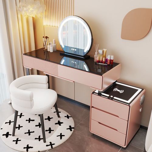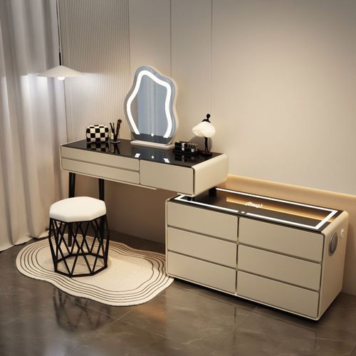 MONTHERIA 다용도 화장대 수납화장대세트(LED 거울+의자+USB 스마트 충전 포함) A598-27