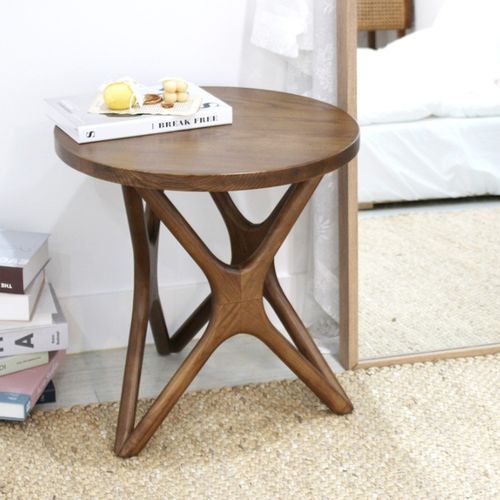 원목 카페 원형 거실 소파 테이블 협탁 티테이블 뿌리, 브라운, 2인용