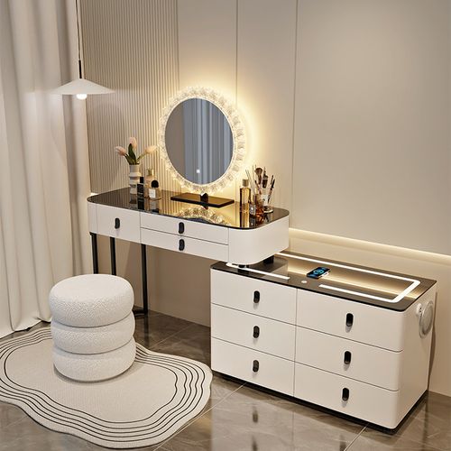 조명화장대 거울 수납 서랍 확장형 블루투스 충전 터치 LED, 1m 화이트+거울+페탈 의자