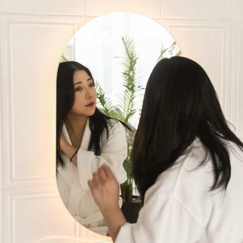 라헨느 프리미엄 LED 양타원(세로) 조명거울 간접조명 인테리어 욕실 화장실 카페 미용실 벽거울, 3색 조정 터치형 (주광색+주백색+전구색)