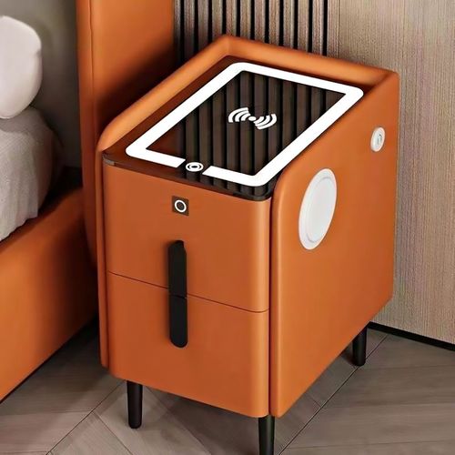 Sunwer 스마트 협탁 무선충전 블루투스 스피커 협탁 LED 조명 미니 지문 잠금 USB 콘센트 침실 거실협탁, 오렌지