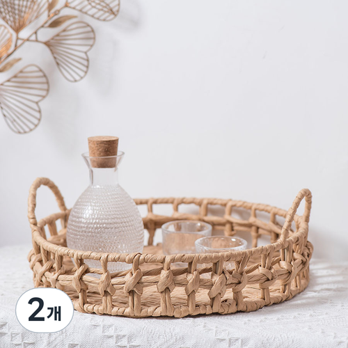오로리팡 라탄 원형 트레이, 내추럴, 2개
