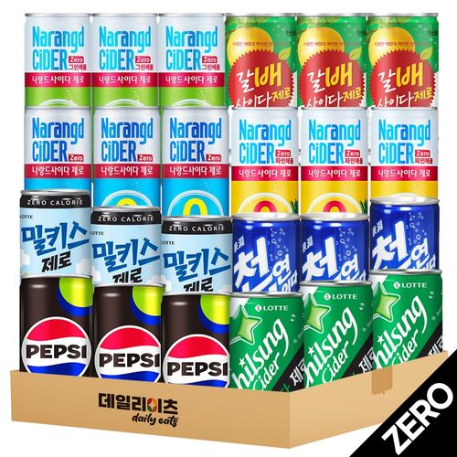 [데일리이츠] 제로칼로리 탄산음료수 8종 24캔 믹스세트 (펩시제로 사이다제로 갈배사이다제로 나랑드사이다 나랑드그린애플 나랑드파인애플 밀키스제로 천연사이다제로)