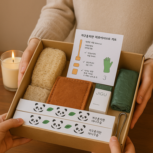 지구오필리아 제로웨이스트 키트 선물세트 수세미3종 대나무칫솔 패키지, 10개, 1세트