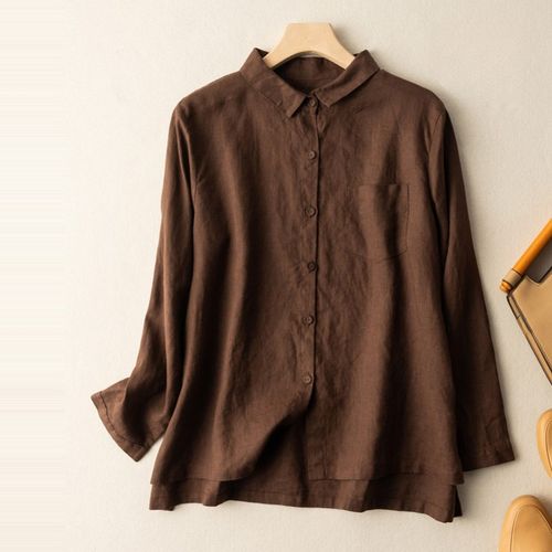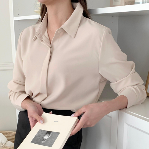플랜앤유 여자 긴팔 면 마 혼방 셔츠 블라우스