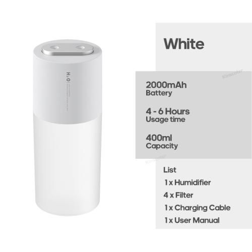 미니 가습기 무소음미니 가습기무선 미니가습기미니 필터가정용 가습기생수병 가습기사무실미니가습기 KINSCOTER 휴대용 더블 미스트 공기 300ml 콜드 디퓨저 2000mAh 자동차