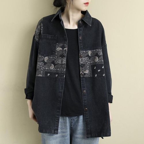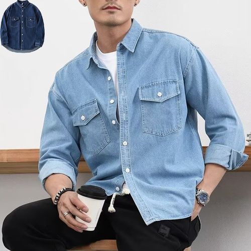 POMTOR 빈티지 루즈핏 긴팔 데님셔츠 프린트 캐주얼 청자켓