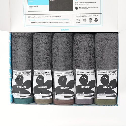 브룸피 프리미엄 뱀부 타올 기프트 세트 220g 40수 수건 5개입 선물세트, 1세트, 다크그레이
