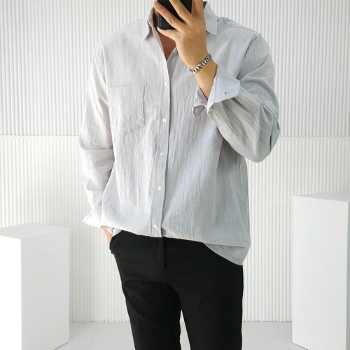 해피유통 남성 얇은 헨리넥 린넨 셔츠 루즈핏 에어 캐주얼 긴팔 셔츠 코트 SHM003