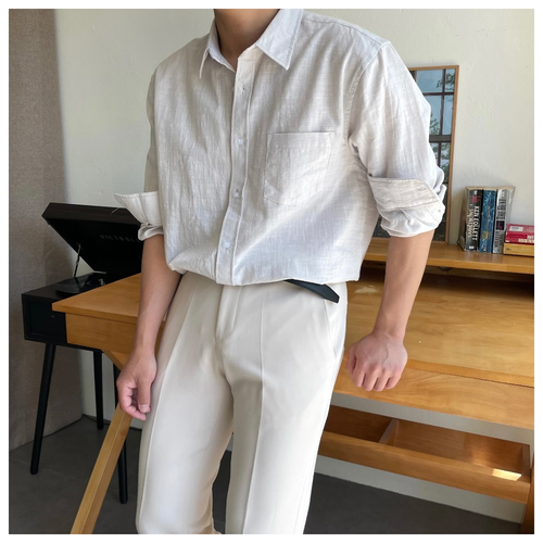 남자 여름 시원한 면 린넨 포켓 카라 기본 셔츠