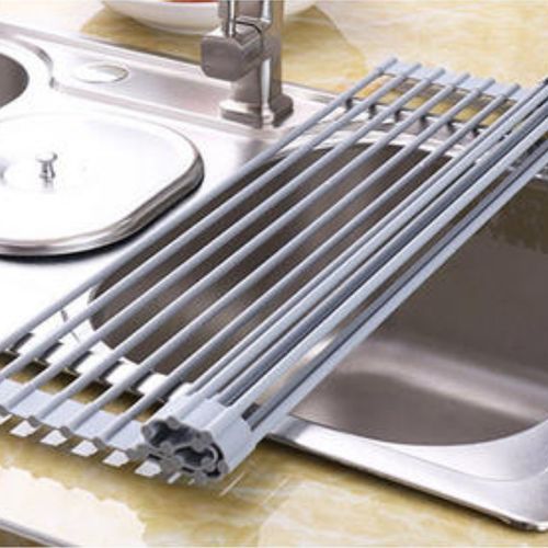 싱크대 실리콘 롤매트 물빠짐 설거지 접이식 식기 건조대-그레이 소형, 1개