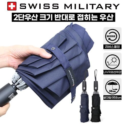 스위스밀리터리 거꾸로 접는 접히는 3단자동우산 리버스