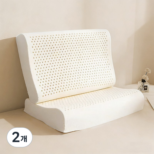 굴곡형 땅콩베개 낮은 경추 편안한 베게 목이편한 태국 천연라텍스 베개 1+1, 2개