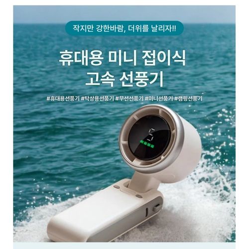 접이식 저소음 무선 고속 휴대용 손 선풍기 C타입, 화이트