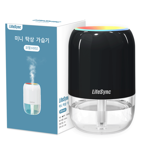 LifeSync 가습기 초음파 무드등 공기 습도 조절 투명 가정용 USB충전 미니 탁상용 대용량 200ml