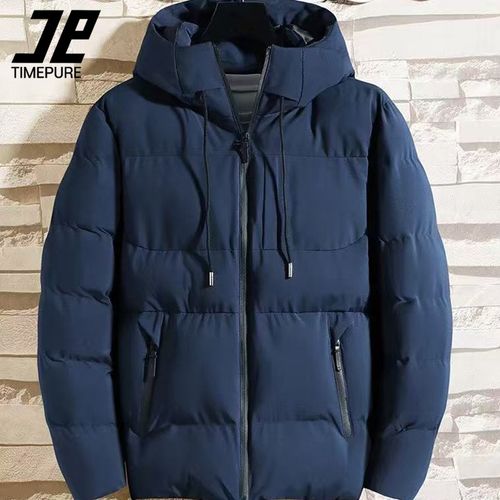 타임퓨어 남성용 겨울 후드 패딩 점퍼 두꺼운 보온성 지퍼 포켓 드로우스트링 디자인 캐주얼 박시 패딩 후드 두꺼운 점퍼