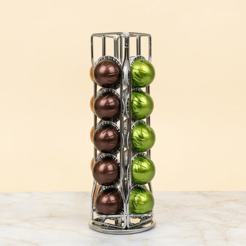 THE100% 네스프레소 버츄오 캡슐 보관함 십자형 회전 타워 실버 20구 호환용