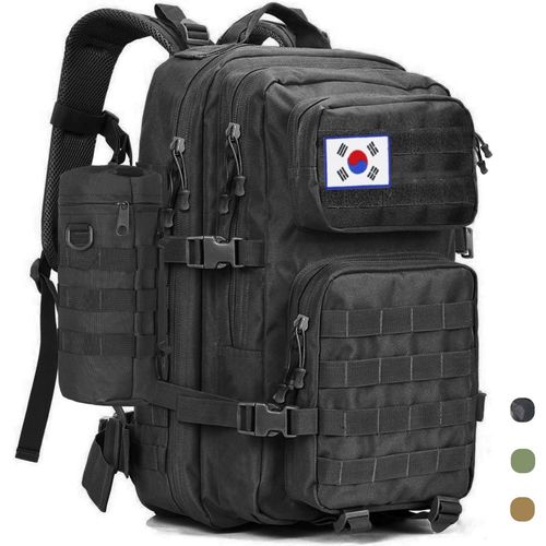 45리터 대용량 군용 전술 백팩 + 10리터 물통 백, 여행 캠핑 피트니스 하이킹 백팩