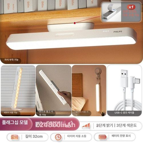LED 독서등 학습용 스탠드 공부 책상 밝기조절 화장대 무선 휴대용 조명 ID등, 화이트