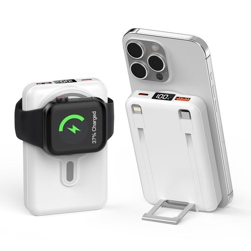 대용량 일체형 케이블 무선충전 잔량표시 고속충전 맥세이프 보조배터리 20000mAh, 화이트