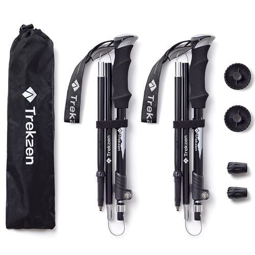 트렉젠 3단 접이식 초경량 등산스틱 2p 세트, 블랙, 2개