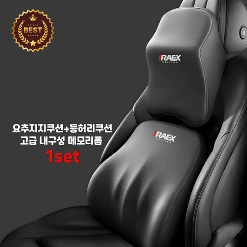아이렉스 2세대 차량용 목+등허리쿠션 메모리폼 목쿠션 허리받침 등받이 장거리, 1세트, 블랙