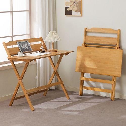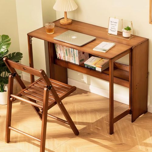 GOOD HOME 원목 접이식 학생용 가정용 컴퓨터 침실 소형 공간용 침대 옆 학습용 소형 책상 심플한 사무용 책상, 내츄럴우드