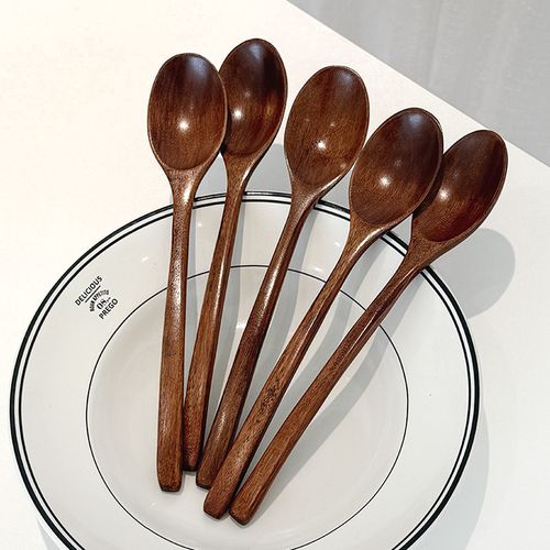 성인용 고급 원목 숟가락, 옻칠, 5개