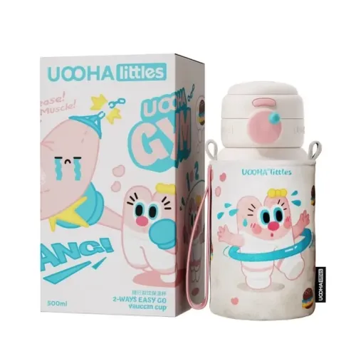 Uooha 귀여운 빨대 일체형 물컵 병 열 보존 휴대용 316 스테인레스 스틸 내부 라이너 주전자 500ml