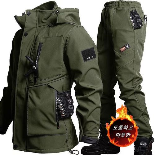 Gradle남자 겨울 방한 작업복 세트 방수 털 스티치 운동복 정비복 아웃도어 바람막이 전술 자켓+기모 트레이닝 바지 상하복세트