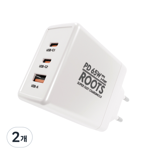 루츠 국내생산 PD 65W PPS C타입 3포트 초고속 멀티충전기, 화이트, 2개