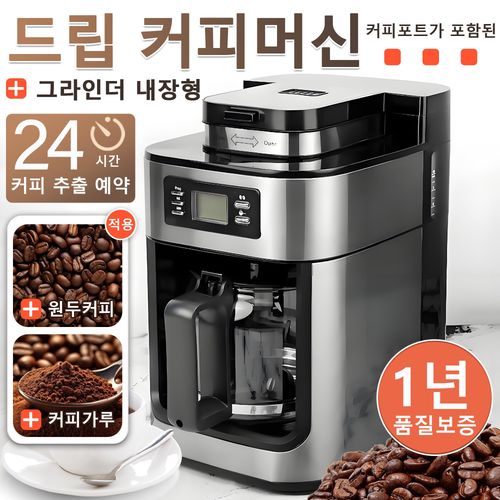 드립 커피 머신 2026 신형,사무실 올인원 커피메이커,원두 갈아서 바로 추출 타이머 예약 보온까지,1년 무료 A/S