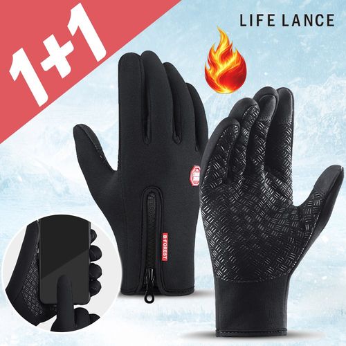 (1+1)라이프란스 네오플랜 방한 장갑 스마트 터치 기모 방수 겨울 캠핑 등산 바이크 자전거 출퇴근 보드 스키, 1세트, 블랙