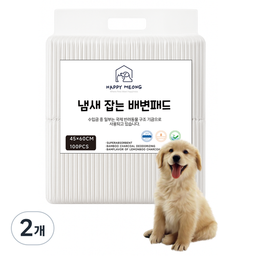 해피멍 강아지 배변패드 활성탄 레몬향 대나무숯, 100개입, 2개