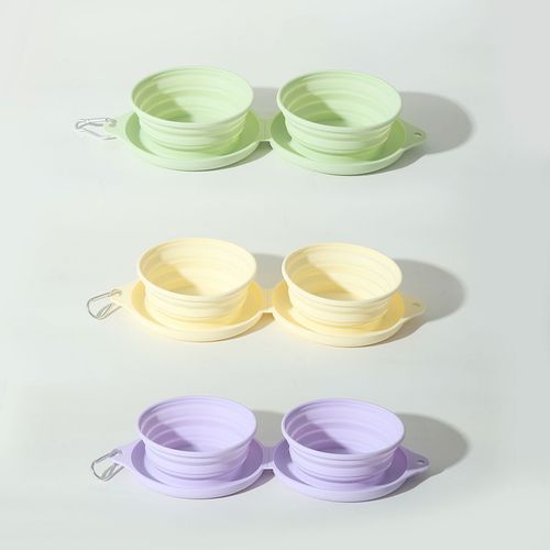 오멍 반려동물 휴대용 접이식 실리콘 식기, 1개, 옐로우