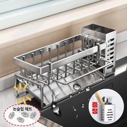 ZOZOFO (벽걸이 가능)올스텐 304 자동물빠짐 수세미건조대 싱크대 스텐 수세미거치대 주방 수저 수납통 수세미걸이 세제 거치대