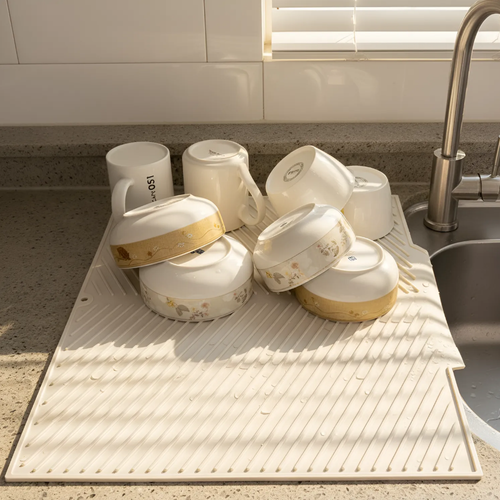 실리콘 물빠짐 식기건조 드라잉 매트, 아이보리, 1개