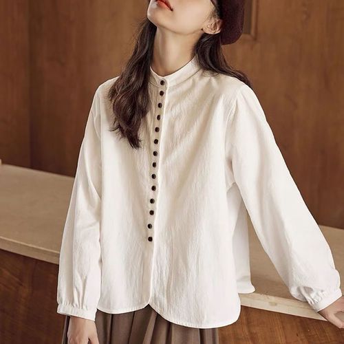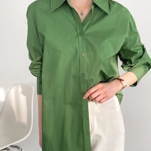 [리우] 여성용 코튼 오픈카라 간절기 긴팔 셔츠 블라우스 5colors