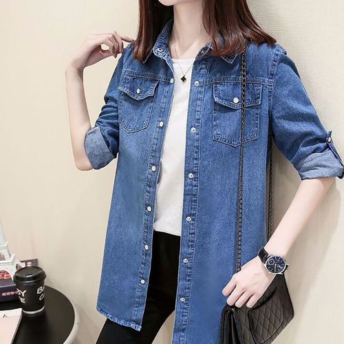[베스트셀러] 지고다그 여성 봄가을 데님 롱셔츠 루즈핏 긴팔 캐주얼 박시핏 아우터 셔츠형 자켓 MY0883