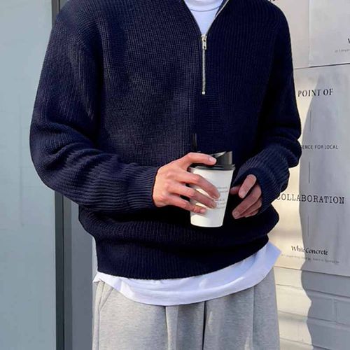 AOKADA 남성 카라 반집업 니트 남녀공용 가을 겨울 스웨터