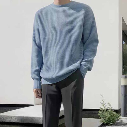 AOKADA 남성 라운드 루즈핏 긴팔 니트 가을 겨울 스웨터