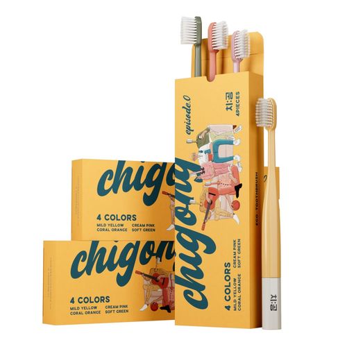 치공 옥수수 전분 이중미세모 칫솔세트 4P 그린 옐로우 핑크 코랄 대한민국 국내제조 직접생산 회사용 선물용 여행용