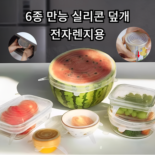 [그로리] 만능 뚜껑 6종 실리콘 덮개 캡 요술 커버 랩, 투명, 1세트