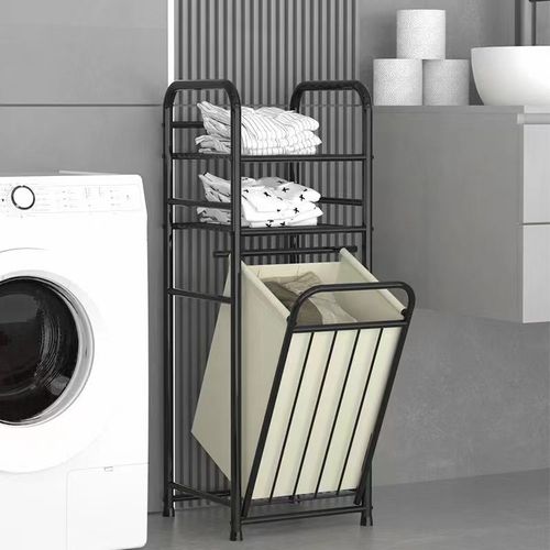 유판 철제 3단 빨래바구니 선반 빨래통, 350x370x1000mm, 블랙