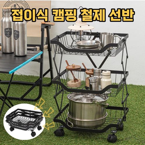 콜미리마 접이식 철제 선반 3단 4단 캠핑 쉘프 정리 대 이동식 트롤리